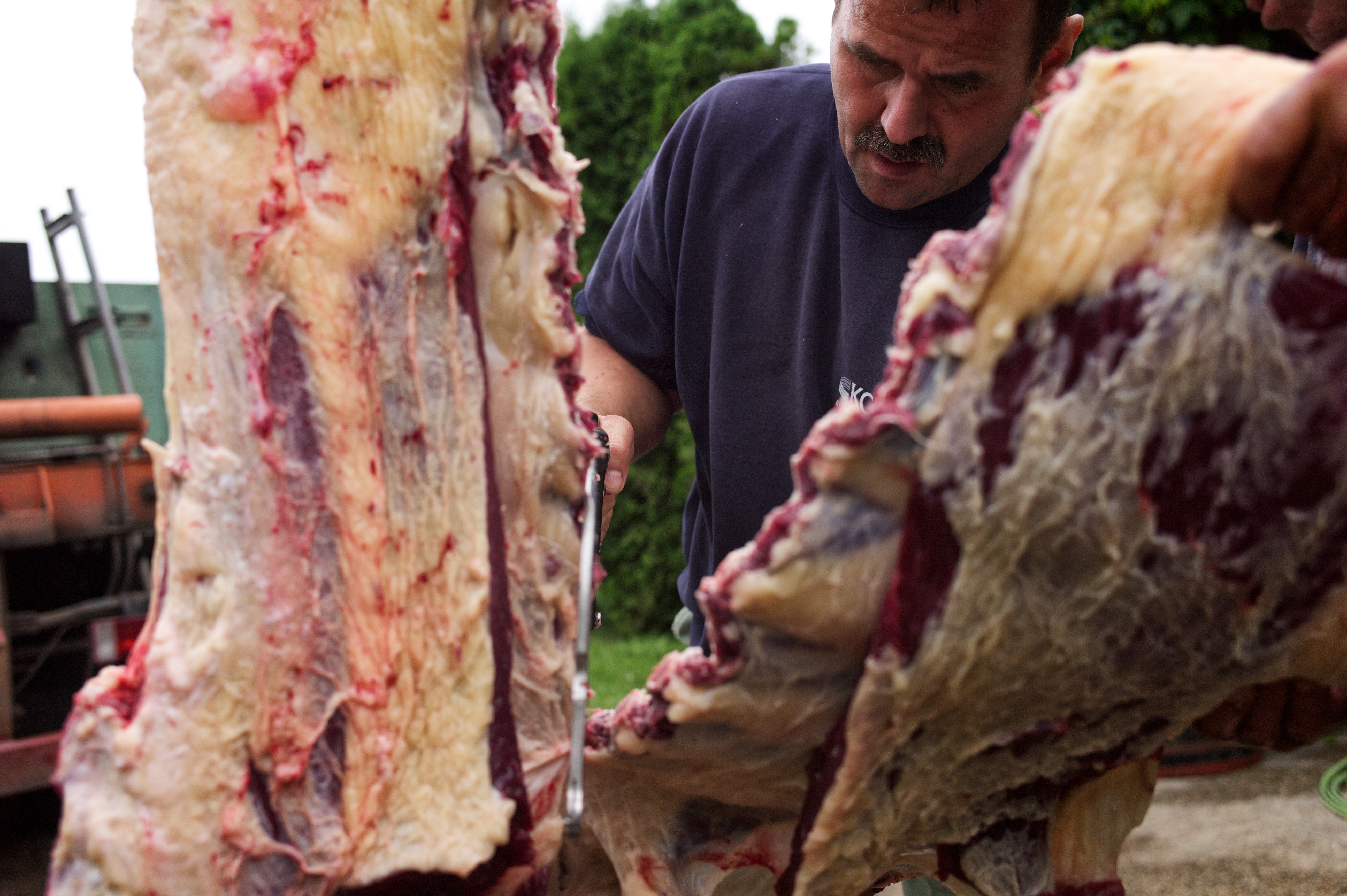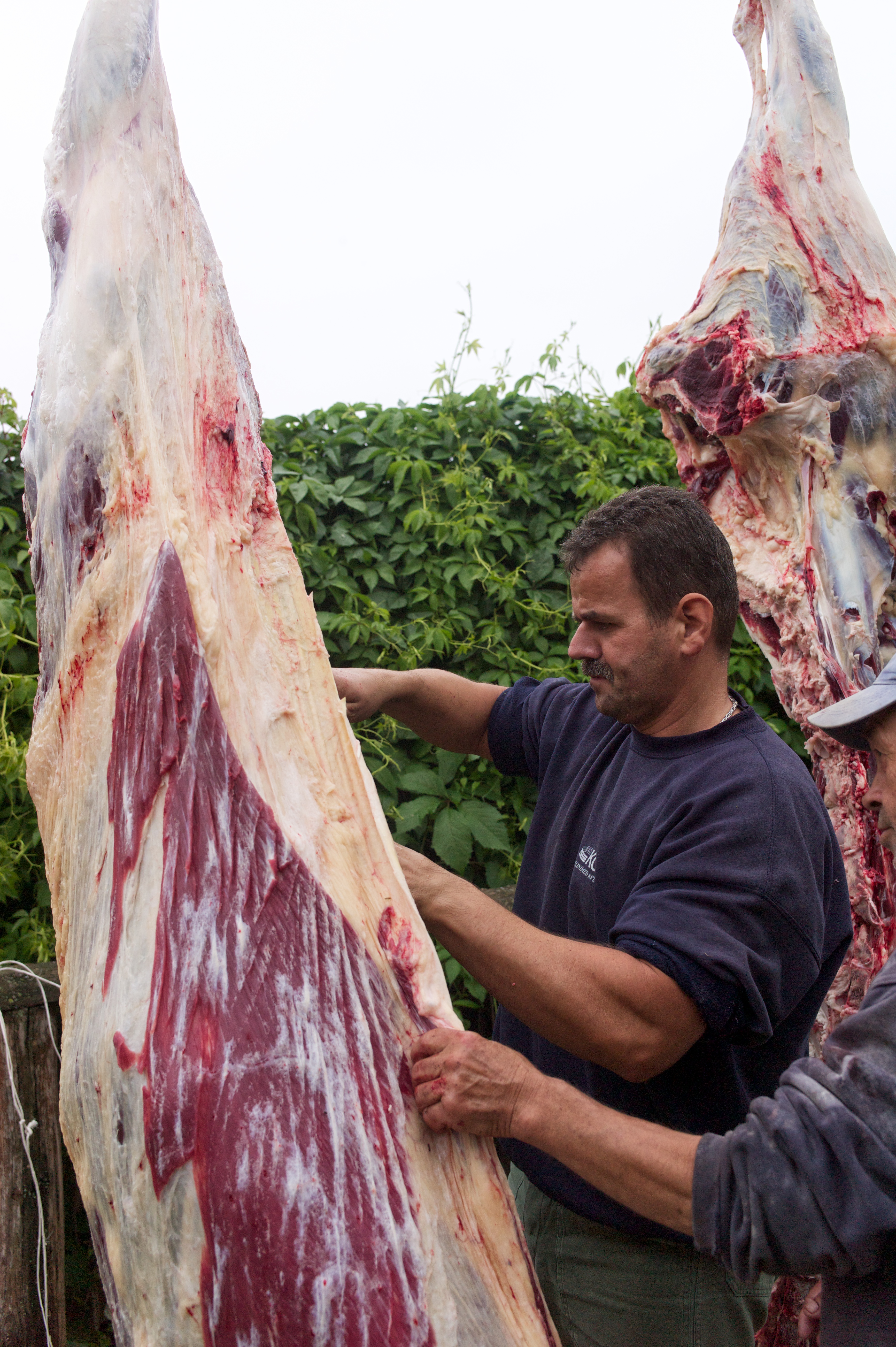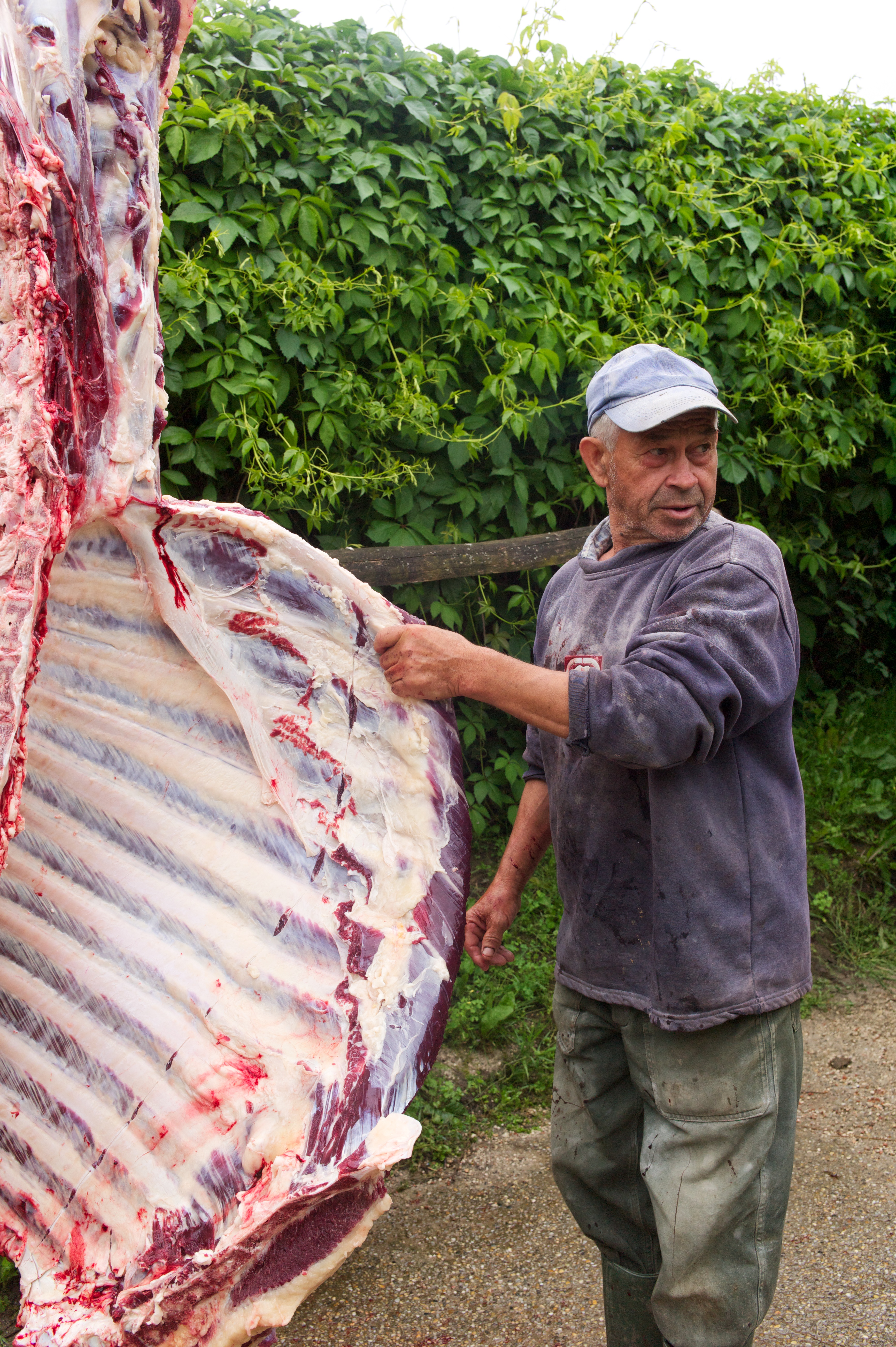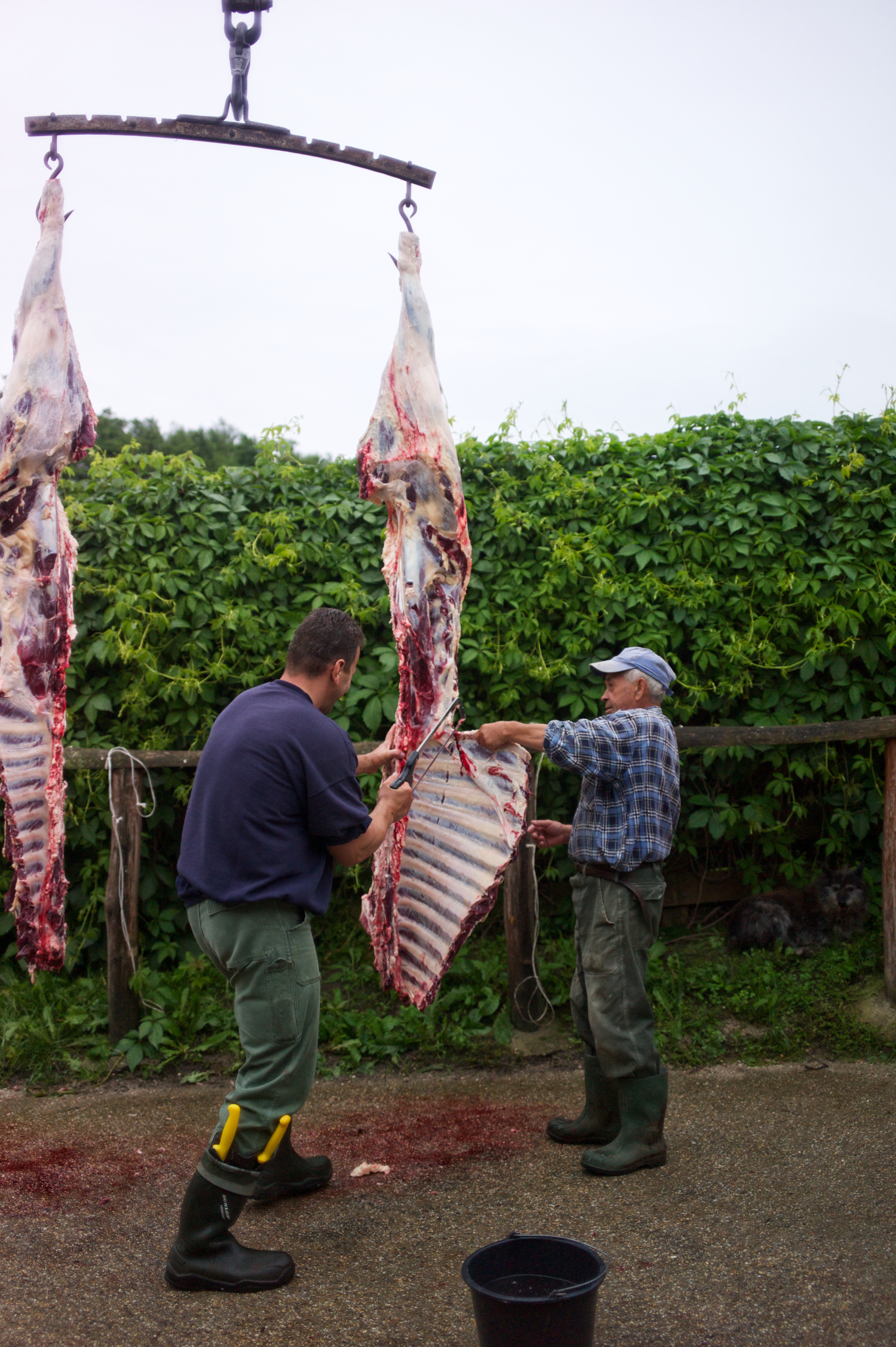 I am an animal lover so there was a great many things that I simply could not look at now and again: The killing of the animal, the gutting of the animal, and the build up to the animals’ death. I could not take photos of these and I found it very difficult to look at. The skills involved in butchering such a large carcass were quite amazing to watch though.