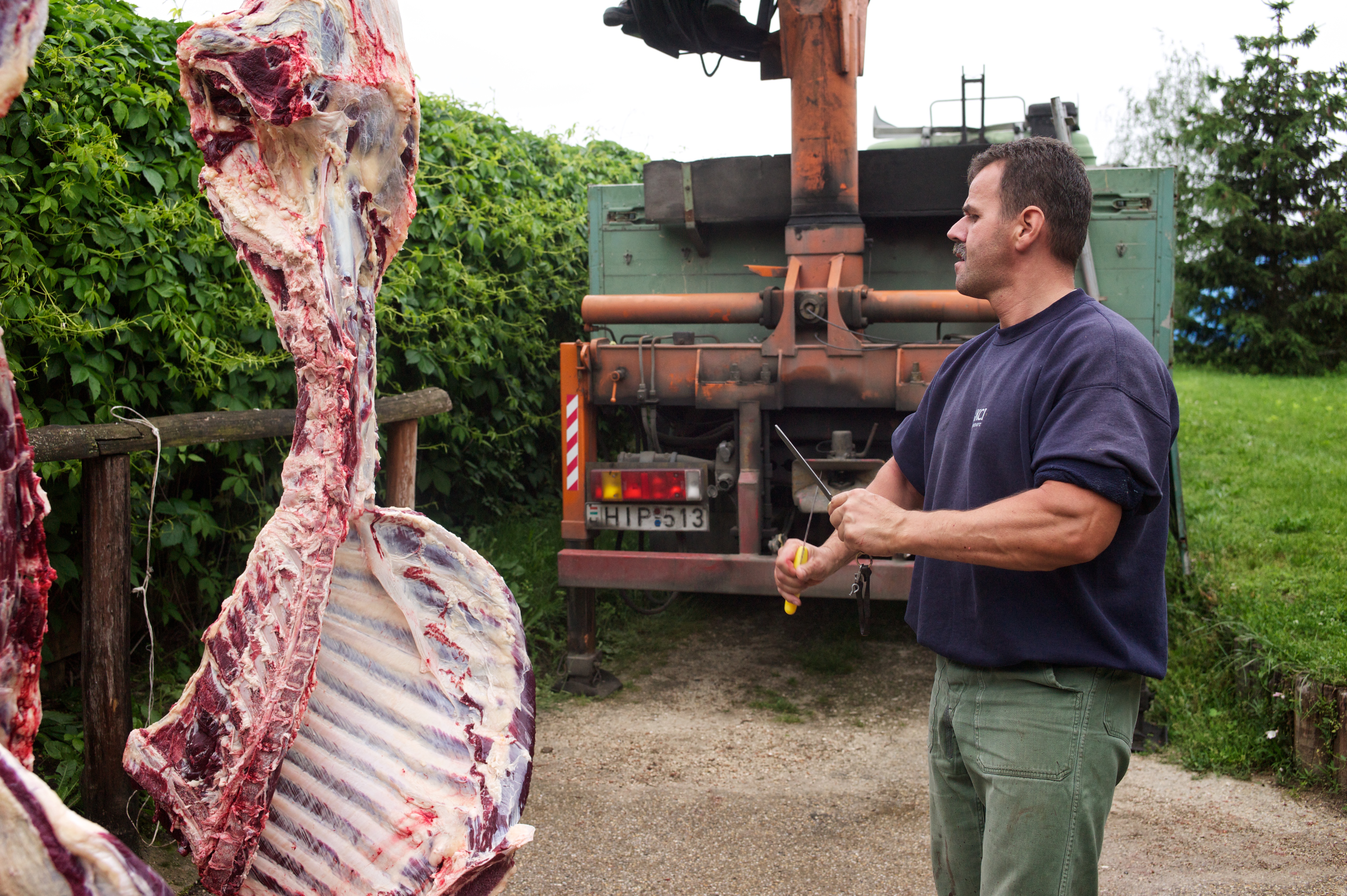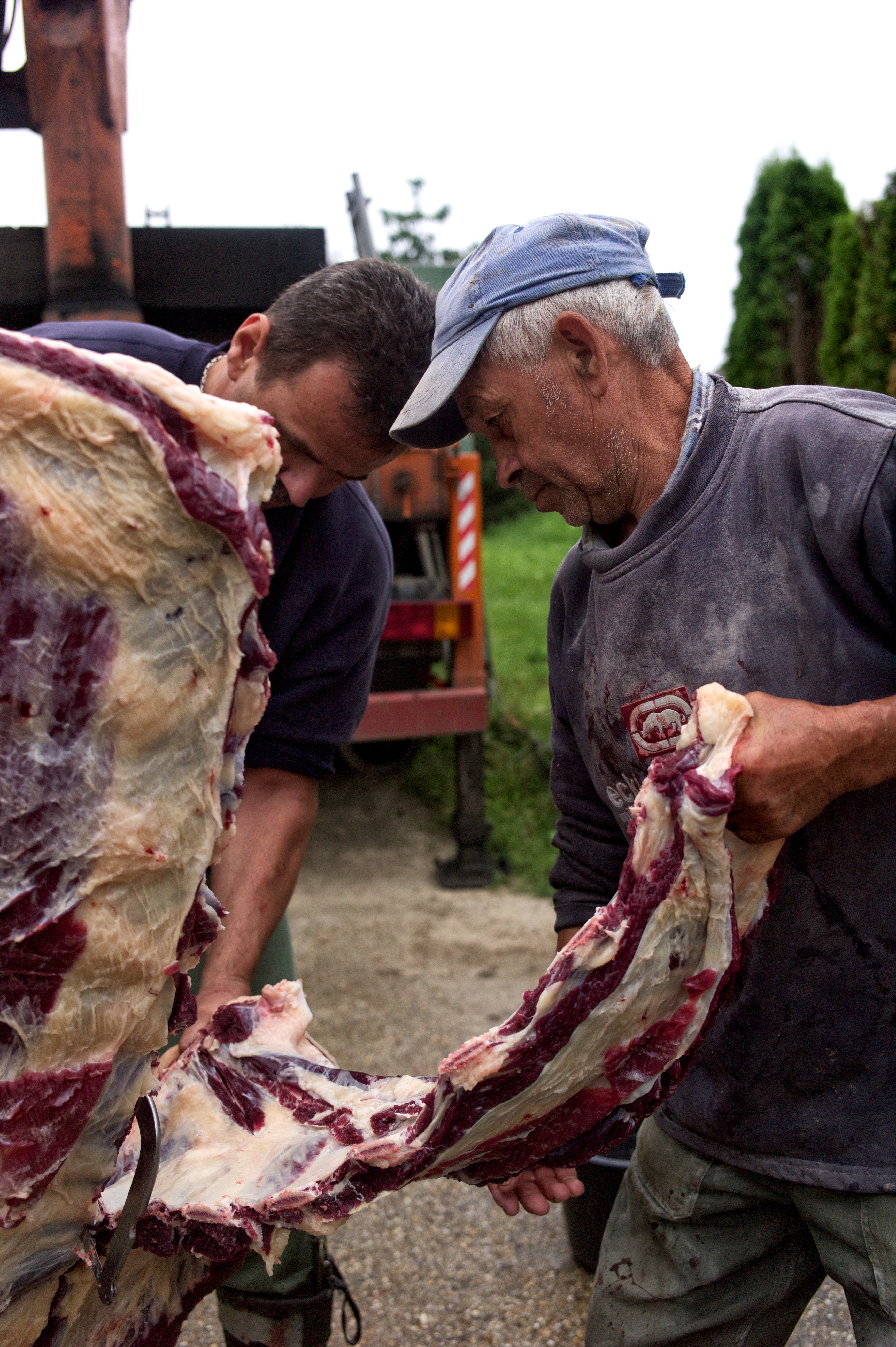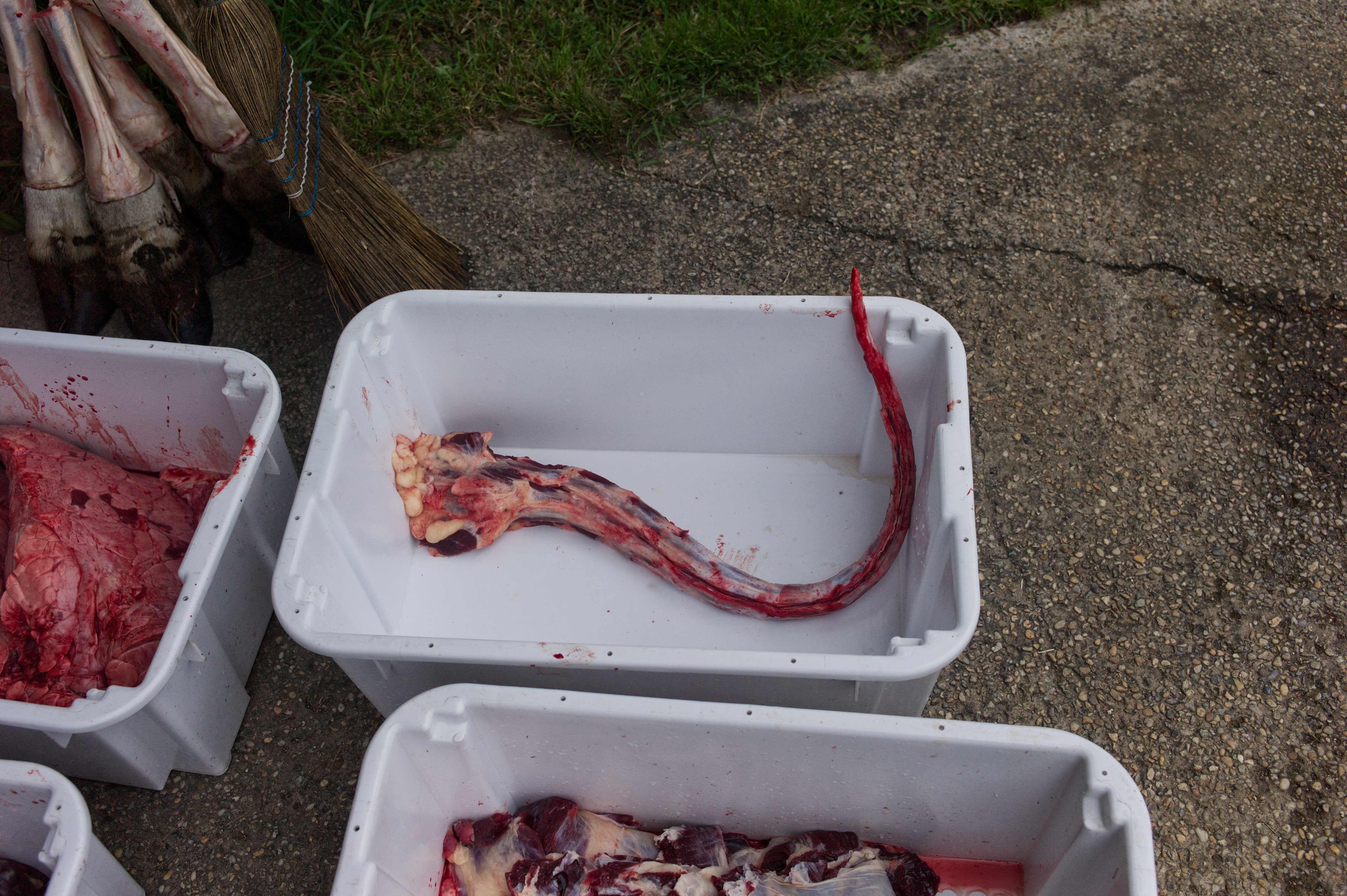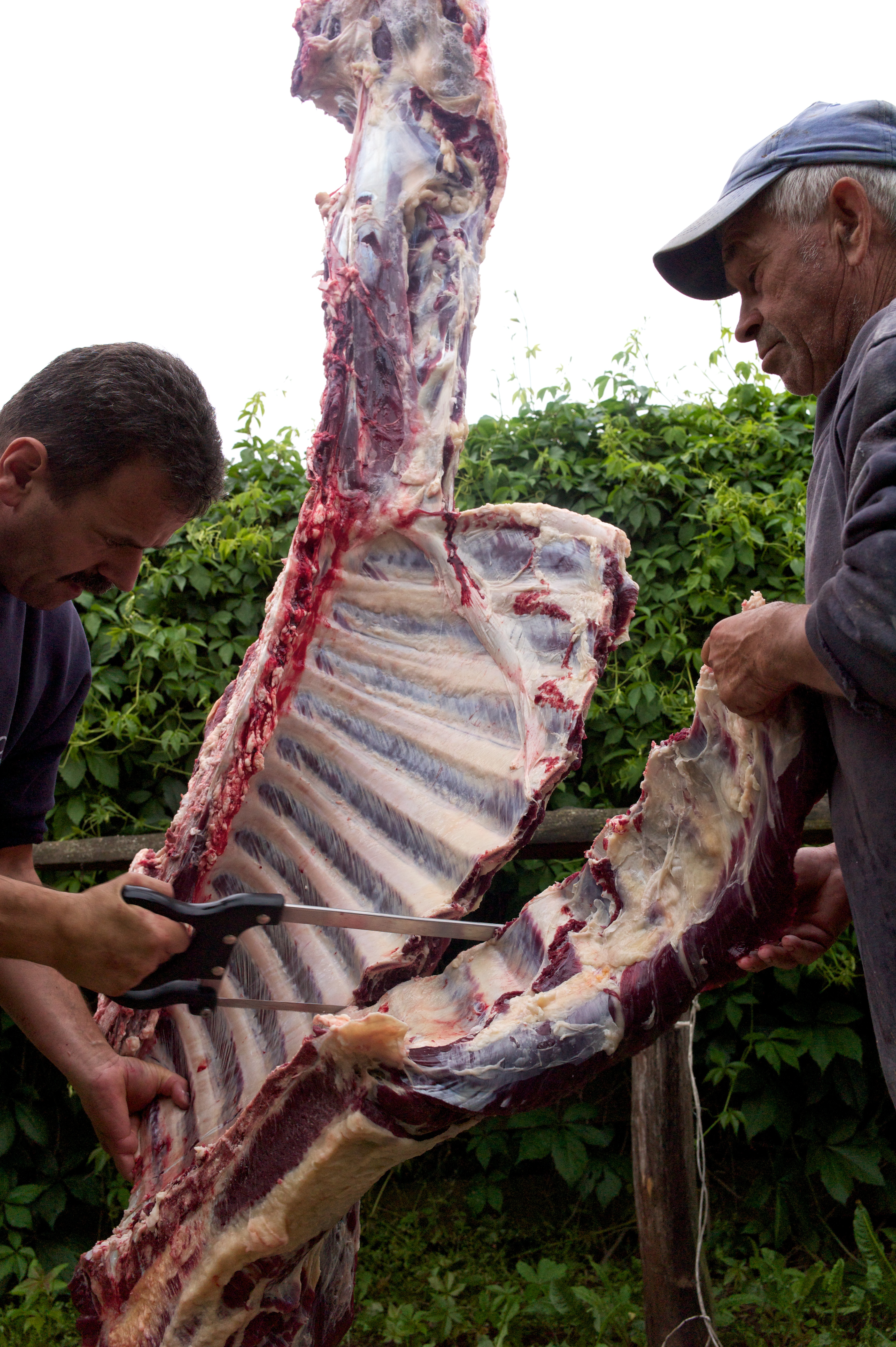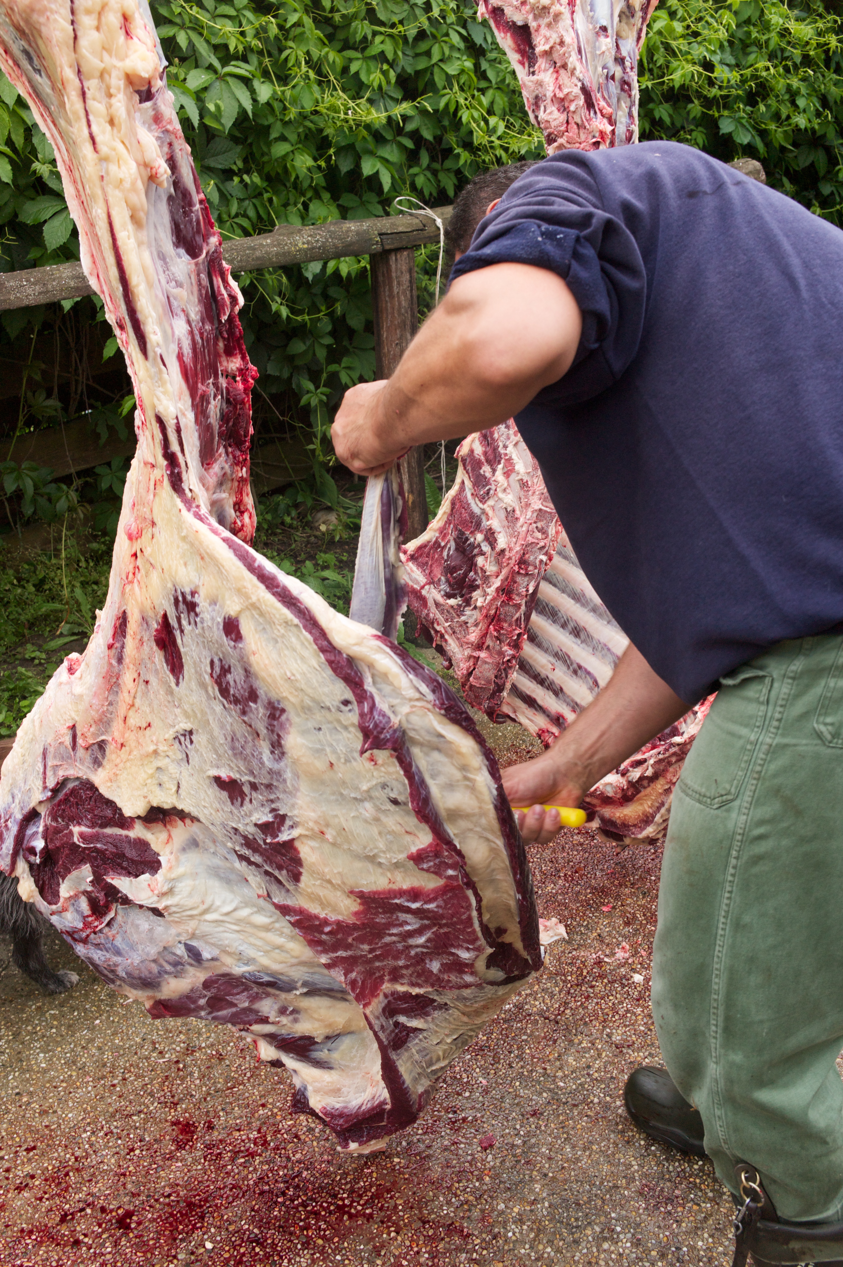 I am an animal lover so there was a great many things that I simply could not look at now and again: The killing of the animal, the gutting of the animal, and the build up to the animals’ death. I could not take photos of these and I found it very difficult to look at. The skills involved in butchering such a large carcass were quite amazing to watch though.